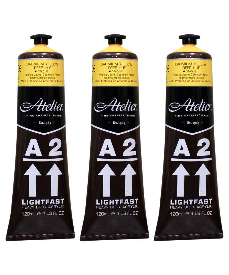 Atelier A2 Heavy Body Lightfast Artist Acrylic, 4 oz., Cadmium Yellow Deep Hue, Pack of 3