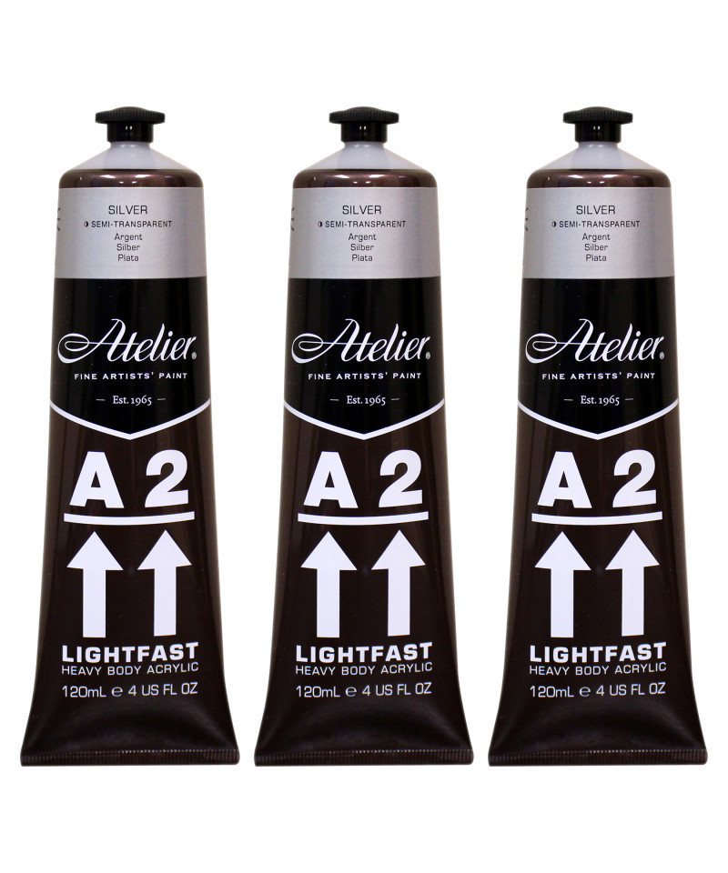 Atelier A2 Heavy Body Lightfast Artist Acrylic, 4 oz., Silver, Pack of 3