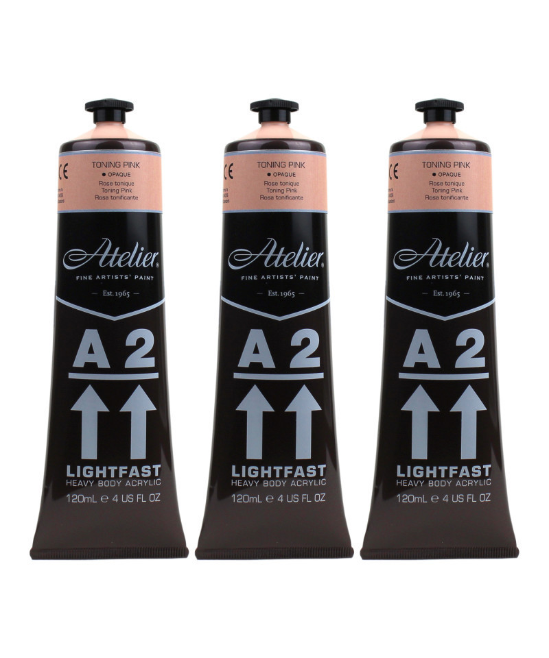 Atelier A2 Heavy Body Lightfast Artist Acrylic, 4 oz., Toning Pink, Pack of 3