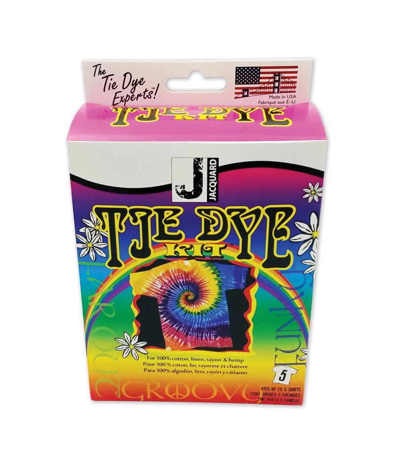 Bring back the psychedelic '60s with this groovy tie-dye kit. Find a T-shirt or some old jeans and embellish them with bold splashes and feathery, rainbow swirls of color. This kit will dye up to 5 shirts in brilliant funkadelic colors. Professional-quality fiber-reactive dyes are combined with easy, illustrated instructions to ensure fabulous results. The kit includes premeasured fuchsia, yellow and turquoise dyes in 3 no-mess applicator bottles. Illustrated comic-book-style instructions include descriptions of 4 tie-dye techniques. The kit also includes vinyl gloves, a bag of soda ash, and a handful of rubber bands. All you need is warm water to mix the dye, a garment, and a bucket or sink. The garment must soak in the soda ash for 20 minutes before you dye it. After you're done, set the garment aside for 24 hours before rinsing, washing and drying it. Then wear your groovy garment with pride. For all ages, with adult supervision. Made in the USA. For over 30 years, Jacquard has been the leading manufacturer of artist quality textile, mixed media and craft products