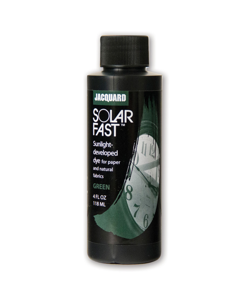 - 4 oz bottle of SolarFast dye: Produces rich Green color on fabric and paper.