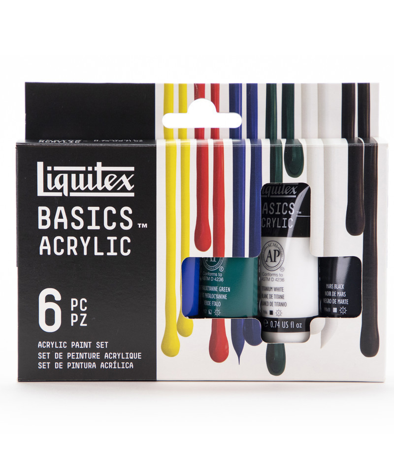 Liquitex BASICS is a student-quality line, made for everyday use by all kinds of artists. Featuring BASICS medium-consistency acrylic paint, this set contains six useful colors to help build your palette. Whether you’re a beginner on a budget, an experienced artist doing underpainting or sketching, or a creative professional doing color scoping and exploration, Liquitex BASICS Acrylic has you covered. Formulated with the same lightfast, fine art pigments used in our professional range (just with a lighter pigment load), BASICS Acrylic delivers a lightfast, medium viscosity experience that sacrifices nothing. It’s the perfect balance of quality, versatility, and economy. So, what are you waiting for? Jump straight in, go for it, and see what happens. Experience The Everyday Acrylic.