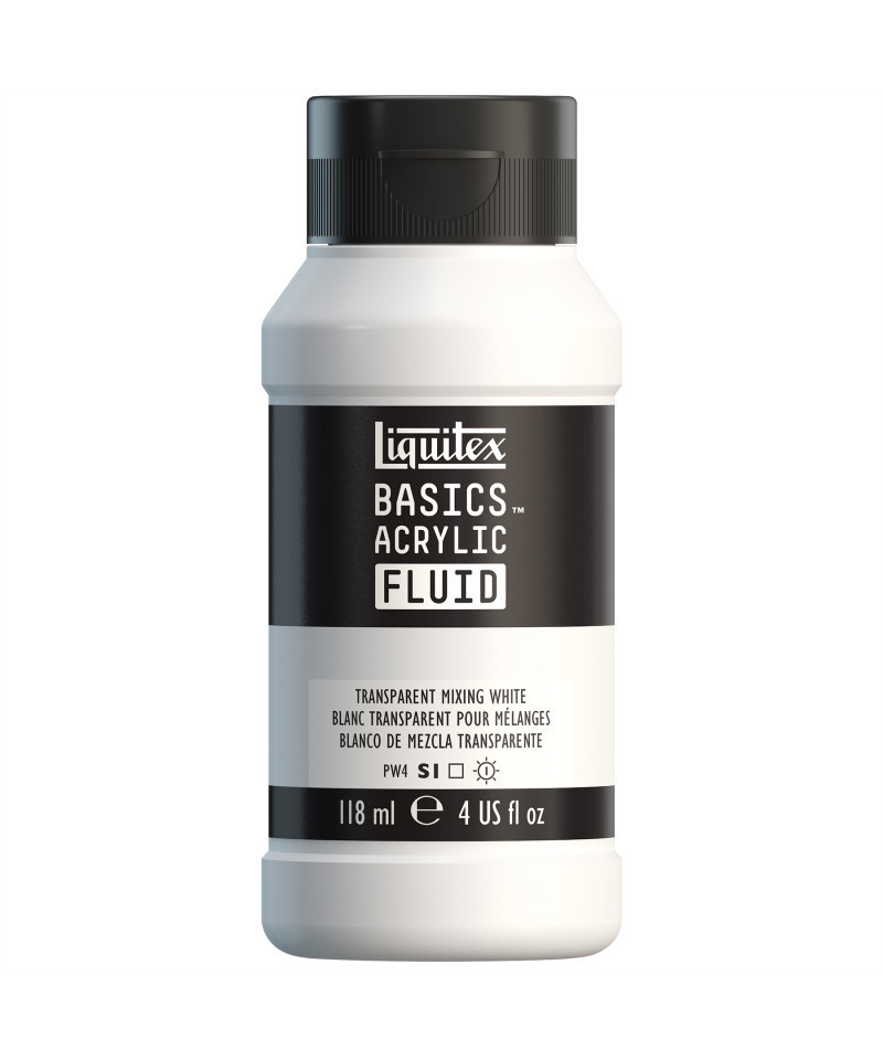 A transparent mixing white with reduced tinting strength, making it ideal for mixing to give stronger tints, and softer toning down of color. Enjoy smooth, pourable color with Liquitex BASICS Acrylic Fluid, 118 mL Bottle. Formulated with the same high-quality pigments as Liquitex BASICS Acrylics, this versatile fluid paint offers excellent coverage, color strength, and permanence in a low-viscosity format. It’s ideal for fine art, craft, and mixed-media techniques such as pouring, dripping, staining, and detail work. The ready-to-use consistency eliminates the need for dilution while maintaining brilliant, even color. Perfect for use on canvas, wood, paper, or fabric, it dries to a flexible, water-resistant finish with rich saturation and subtle sheen. Non-toxic and intermixable with all Liquitex acrylics and mediums, Liquitex BASICS Acrylic Fluid gives artists, educators, and students the freedom to explore expressive, high-flow applications with professional-quality results.