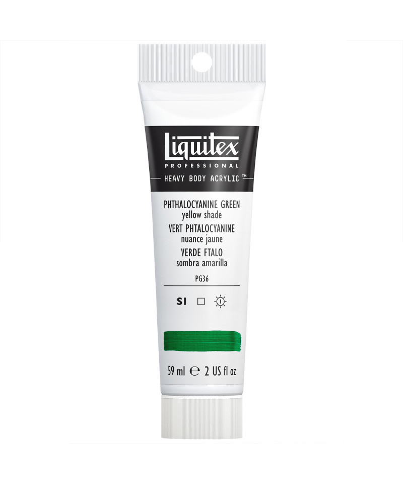 A brilliant transparent green single pigment color with a yellow undertone. It's made from the modern synthetic pigment phthalocyanine which was introduced in the 1930s and has a high tinting strength. Experience rich texture and exceptional pigment strength with Liquitex Professional Heavy Body Acrylic Paint, 59 mL Tube. Known for its buttery consistency and intense color load, this professional-grade acrylic delivers outstanding coverage, permanence, and flexibility across a wide range of surfaces. The high-viscosity formula retains brushstrokes and knife marks beautifully, making it ideal for impasto, layering, and mixed-media techniques. Every color is made with lightfast, artist-quality pigments for consistent, archival results that won’t fade or crack over time. Perfect for fine artists, educators, and advanced students, Liquitex Professional Heavy Body Acrylic provides the tactile experience of oil paint with the fast-drying, water-based convenience of acrylics. Mix it with Liquitex mediums for limitless texture, transparency, and finish options.