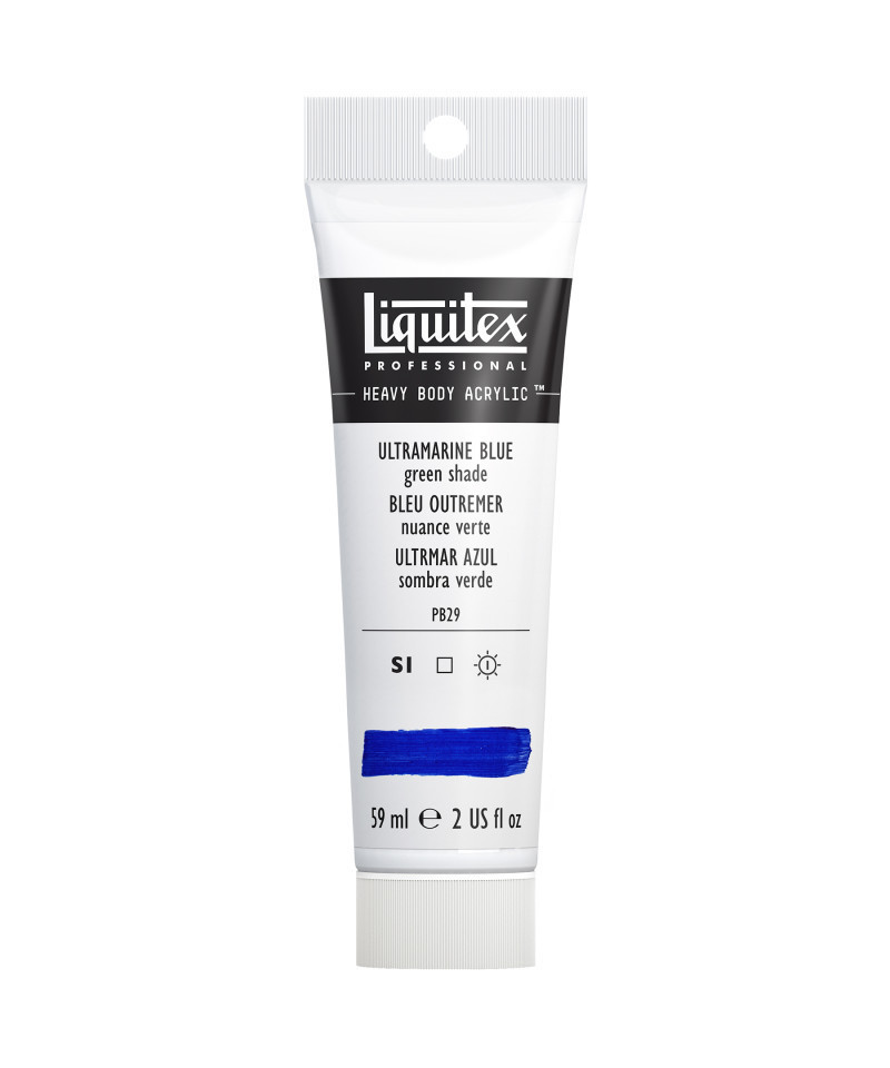 A single pigment rich transparent blue with green undertones. Allegedly named because it was thought 'bluer than the sea', Ultramarine was originally made from semi-precious lapis lazuli. The current pigment was created by French chemist Guimet in 1828 as a synthetic, but chemically-identical alternative. Experience rich texture and exceptional pigment strength with Liquitex Professional Heavy Body Acrylic Paint, 59 mL Tube. Known for its buttery consistency and intense color load, this professional-grade acrylic delivers outstanding coverage, permanence, and flexibility across a wide range of surfaces. The high-viscosity formula retains brushstrokes and knife marks beautifully, making it ideal for impasto, layering, and mixed-media techniques. Every color is made with lightfast, artist-quality pigments for consistent, archival results that won’t fade or crack over time. Perfect for fine artists, educators, and advanced students, Liquitex Professional Heavy Body Acrylic provides the tactile experience of oil paint with the fast-drying, water-based convenience of acrylics. Mix it with Liquitex mediums for limitless texture, transparency, and finish options.
