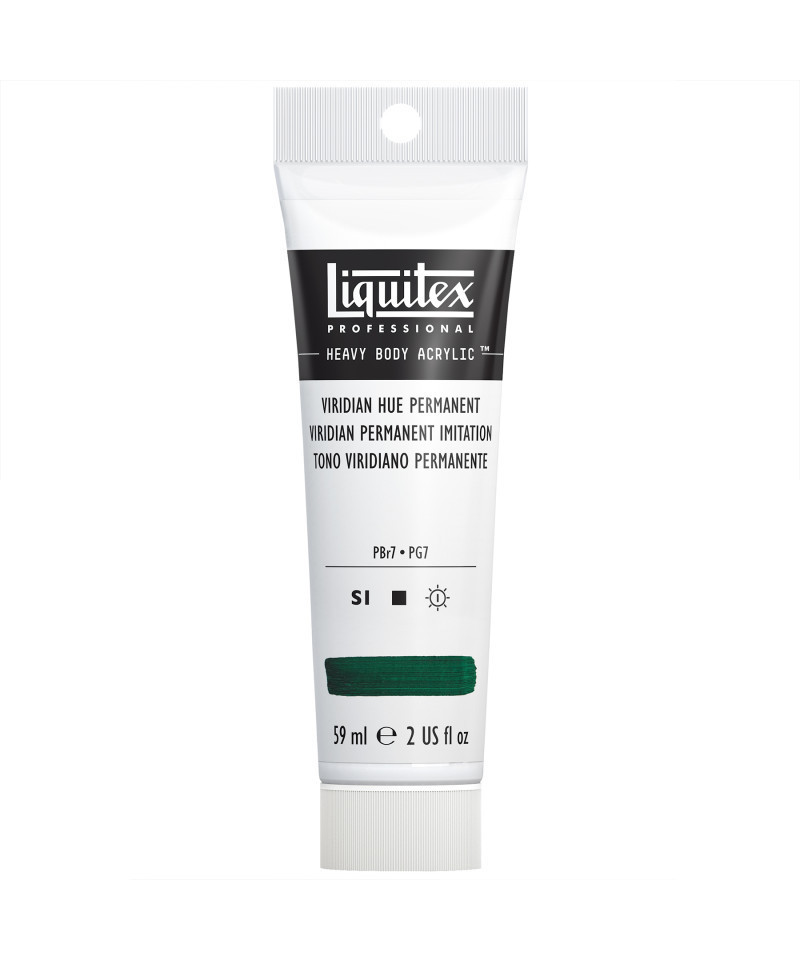 A deep, cold blue-green multi pigment hue. Highly opaque, this recreates the true viridian pigment which was patented by Guignet of Paris in 1859 and celebrated for its excellent permanence. Viridian was used by 20th century masters including Van Gogh, Kandinsky and Klee. Experience rich texture and exceptional pigment strength with Liquitex Professional Heavy Body Acrylic Paint, 59 mL Tube. Known for its buttery consistency and intense color load, this professional-grade acrylic delivers outstanding coverage, permanence, and flexibility across a wide range of surfaces. The high-viscosity formula retains brushstrokes and knife marks beautifully, making it ideal for impasto, layering, and mixed-media techniques. Every color is made with lightfast, artist-quality pigments for consistent, archival results that won’t fade or crack over time. Perfect for fine artists, educators, and advanced students, Liquitex Professional Heavy Body Acrylic provides the tactile experience of oil paint with the fast-drying, water-based convenience of acrylics. Mix it with Liquitex mediums for limitless texture, transparency, and finish options.
