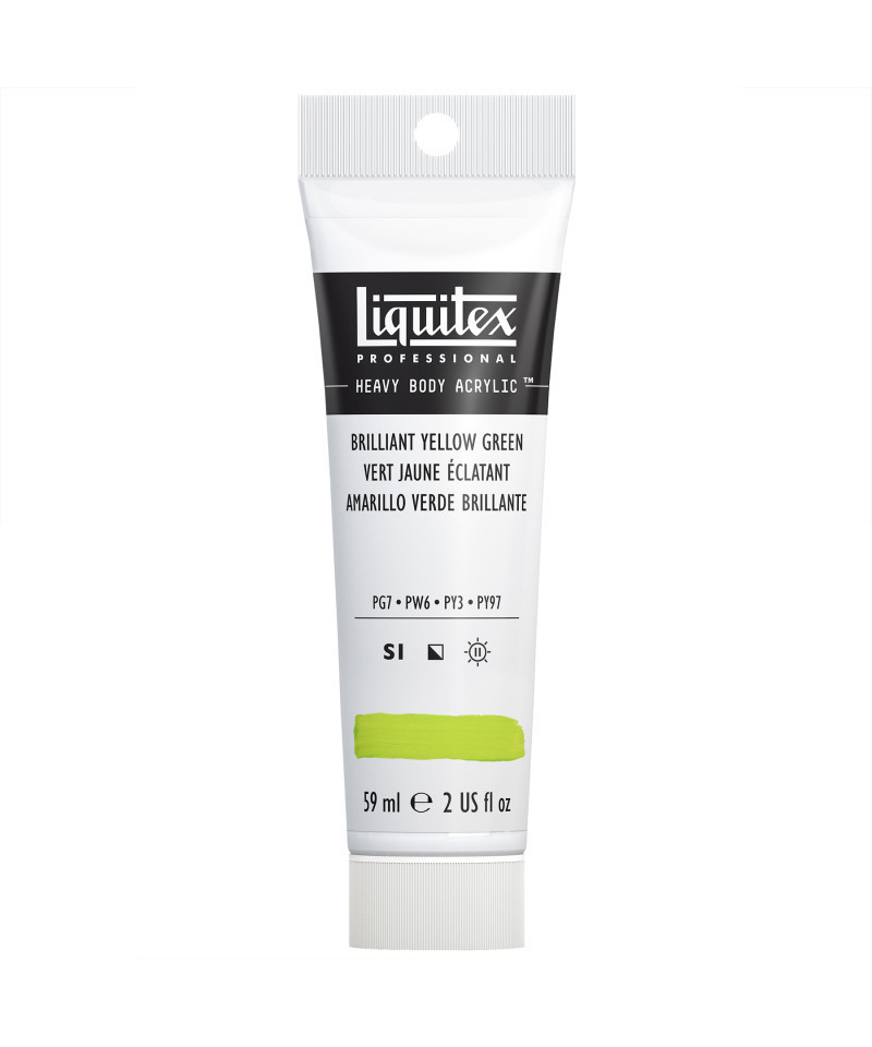 A pale green-yellow semi-opaque color, made up of four pigments - phthalocyanine, two types of hansa yellow and titanium white. Experience rich texture and exceptional pigment strength with Liquitex Professional Heavy Body Acrylic Paint, 59 mL Tube. Known for its buttery consistency and intense color load, this professional-grade acrylic delivers outstanding coverage, permanence, and flexibility across a wide range of surfaces. The high-viscosity formula retains brushstrokes and knife marks beautifully, making it ideal for impasto, layering, and mixed-media techniques. Every color is made with lightfast, artist-quality pigments for consistent, archival results that won’t fade or crack over time. Perfect for fine artists, educators, and advanced students, Liquitex Professional Heavy Body Acrylic provides the tactile experience of oil paint with the fast-drying, water-based convenience of acrylics. Mix it with Liquitex mediums for limitless texture, transparency, and finish options.