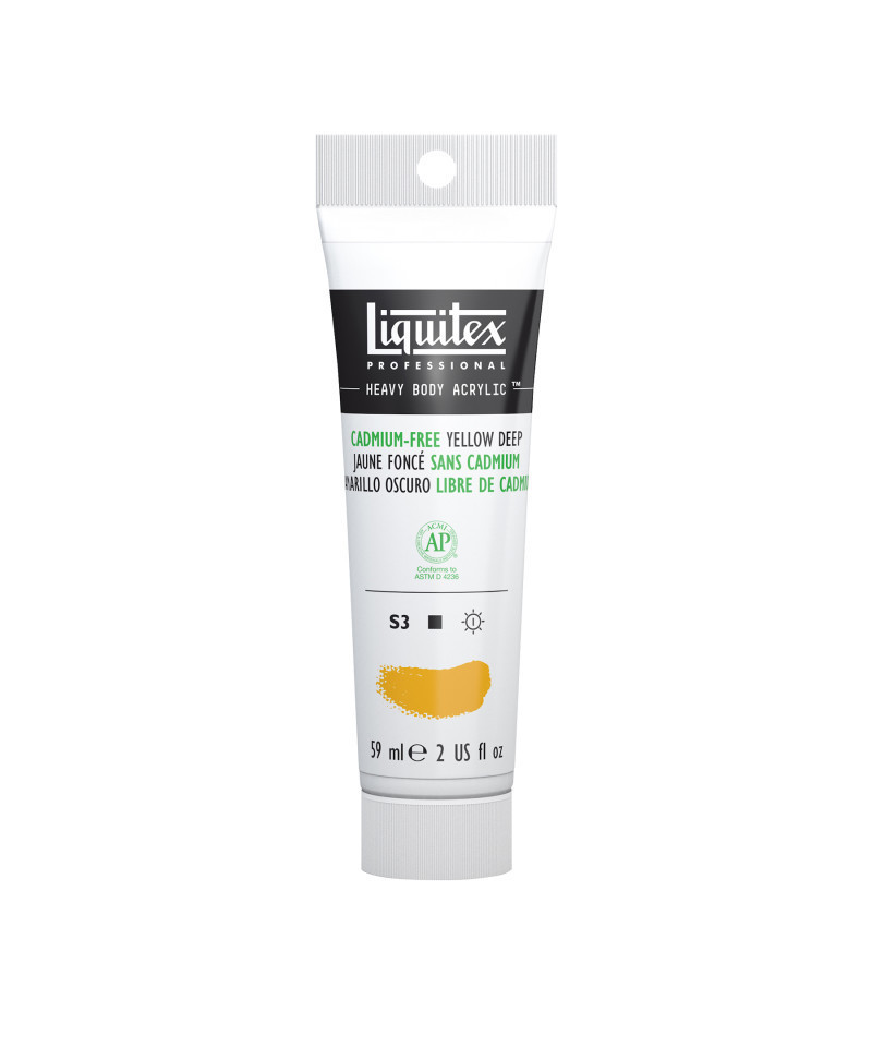 A cadmium-free deep yellow opaque color with orange tones and excellent tinting properties. This replicates the brightness, coverage and intensity of the traditional cadmium alternative. Experience rich texture and exceptional pigment strength with Liquitex Professional Heavy Body Acrylic Paint, 59 mL Tube. Known for its buttery consistency and intense color load, this professional-grade acrylic delivers outstanding coverage, permanence, and flexibility across a wide range of surfaces. The high-viscosity formula retains brushstrokes and knife marks beautifully, making it ideal for impasto, layering, and mixed-media techniques. Every color is made with lightfast, artist-quality pigments for consistent, archival results that won’t fade or crack over time. Perfect for fine artists, educators, and advanced students, Liquitex Professional Heavy Body Acrylic provides the tactile experience of oil paint with the fast-drying, water-based convenience of acrylics. Mix it with Liquitex mediums for limitless texture, transparency, and finish options.