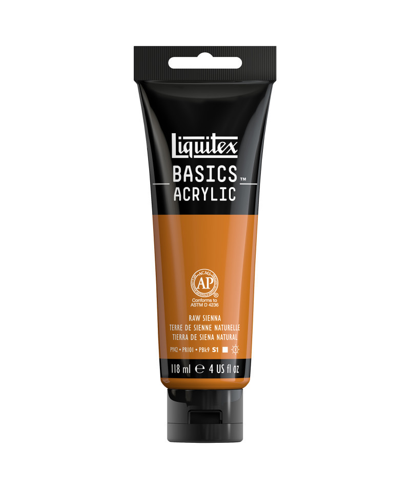 A bright brown earth color with a yellow undertone and high opacity. Raw sienna is one of the oldest pigments in its natural state and can be found in prehistoric cave art. It is named after Siena, Italy where the pigment was sourced during the Renaissance. Whether you’re a beginner on a budget, an experienced artist doing underpainting or sketching, or a creative professional doing color scoping and exploration, Liquitex Basics Acrylic has you covered. Formulated with the same lightfast, fine art pigments used in our professional range (just with a lighter pigment load), Basics Acrylic delivers a lightfast, medium viscosity experience that sacrifices nothing. It’s the perfect balance of quality, versatility, and economy. So, what are you waiting for? Jump straight in, go for it, and see what happens. Experience The Everyday Acrylic.