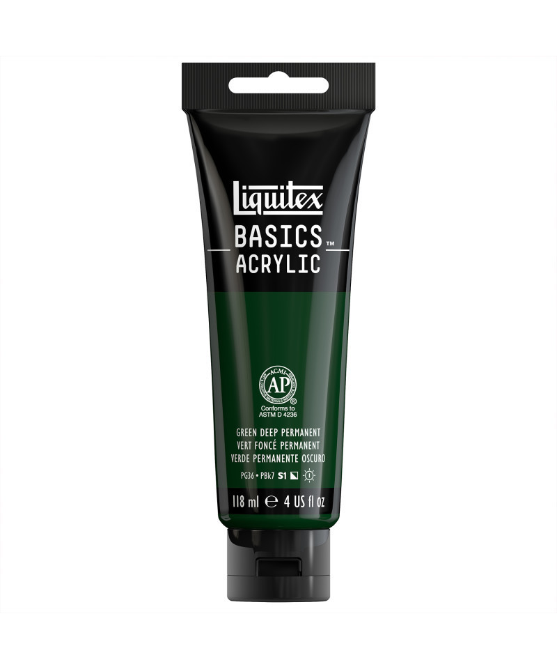 A deep green-blue color, made up of multiple pigments, that is semi-opaque. Whether you’re a beginner on a budget, an experienced artist doing underpainting or sketching, or a creative professional doing color scoping and exploration, Liquitex Basics Acrylic has you covered. Formulated with the same lightfast, fine art pigments used in our professional range (just with a lighter pigment load), Basics Acrylic delivers a lightfast, medium viscosity experience that sacrifices nothing. It’s the perfect balance of quality, versatility, and economy. So, what are you waiting for? Jump straight in, go for it, and see what happens. Experience The Everyday Acrylic.