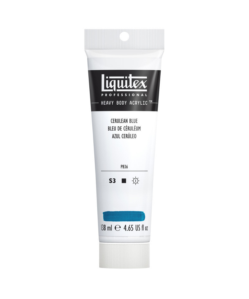 This is a single pigment, opaque rich blue with green undertones. Its name derives from the Latin caeruleum meaning sky-blue pigment and was originally made in the 19th century by mixing cobalt blue with tin oxide. It is essentially a tint of cobalt blue. Unlock your potential with thick, high viscosity, pigment-rich professional acrylic color. Formulated with a high concentration of lightfast artist-quality pigment and a satin finish, Heavy Body Acrylic gives you permanent color with crisp brush strokes and bold knife marks. Never too slippery, or too sticky, take your creativity to new peaks with satisfyingly rich color, perfect for impasto, blending and all kinds of pro painting techniques.