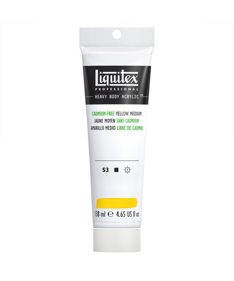 A cadmium-free mid-range yellow opaque color with excellent tinting properties. This replicates the brightness, coverage and intensity of the traditional cadmium alternative. Unlock your potential with thick, high viscosity, pigment-rich professional acrylic color. Formulated with a high concentration of lightfast artist-quality pigment and a satin finish, Heavy Body Acrylic gives you permanent color with crisp brush strokes and bold knife marks. Never too slippery, or too sticky, take your creativity to new peaks with satisfyingly rich color, perfect for impasto, blending and all kinds of pro painting techniques.