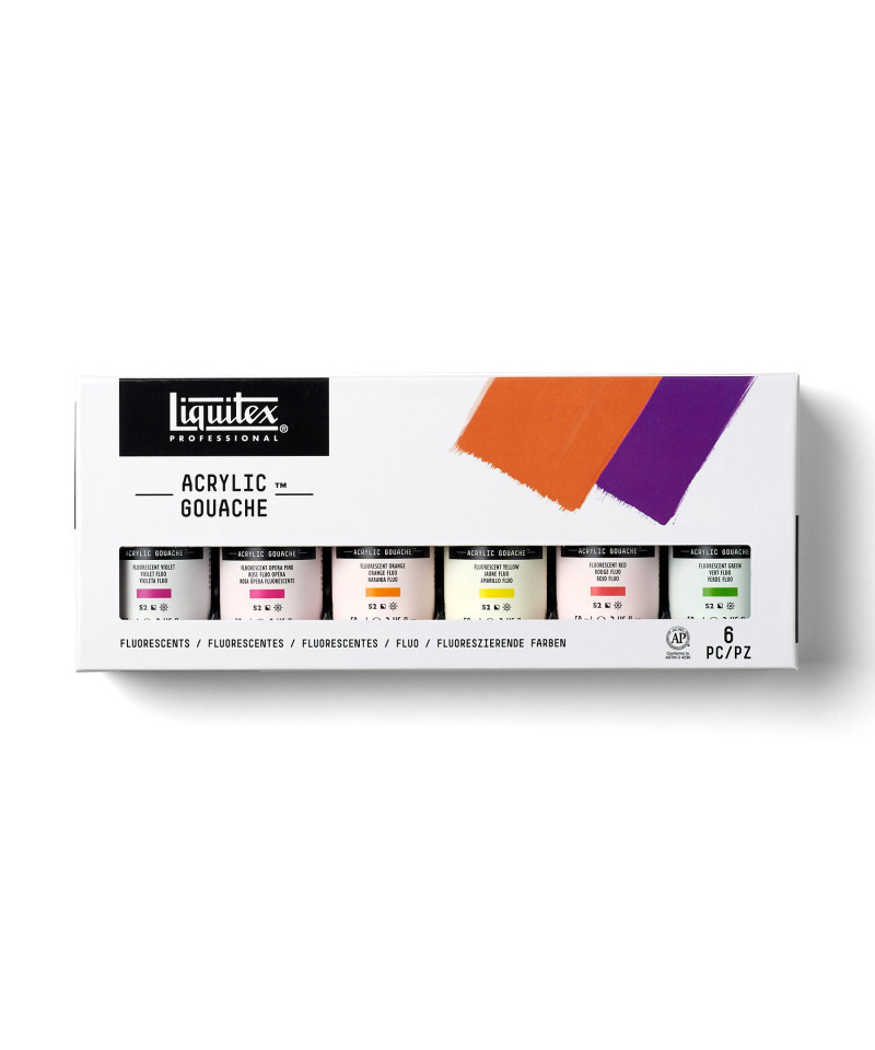 Meet Acrylic Gouache, the most highly pigmented of all our paints. With a flat matt finish, intense colors, it won't crack and there's no need to dilute. Add a new dimension to your palette with this ultra-vivid fluorescent color collection. Thought you knew gouache? Think again. Acrylic Gouache rewrites the rules. Giving you the color intensity you want, with no visible brush strokes, no cracks, no need to dilute, just a permanent, water-resistant formula that performs every time. And because its solid, flat-matte finish doesn’t reflect light, Acrylic Gouache is perfect for photographing, scanning and mixing with digital effects, illustrations, and designs. See what happens when you think differently.