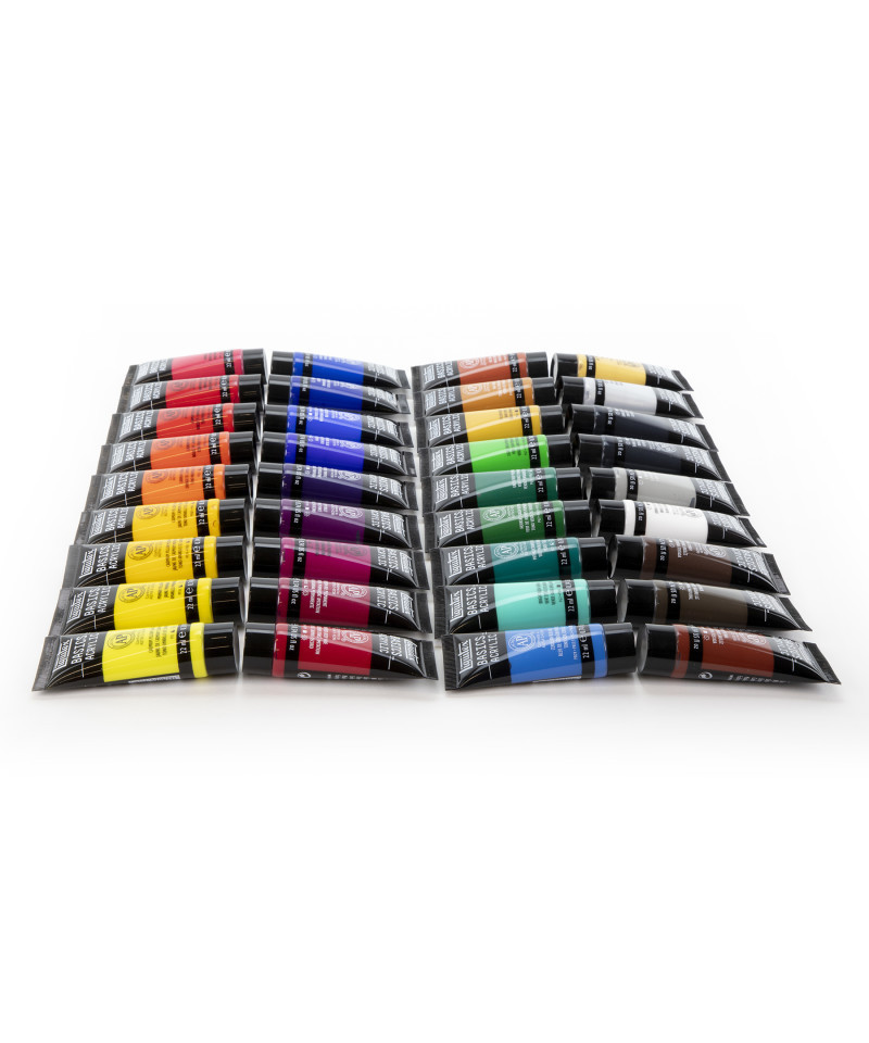 Featuring Liquitex BASICS medium-consistency acrylic paint, made with lightfast fine art pigments, this set contains 36 tubes of Basics color. Create with confidence using Liquitex BASICS Acrylic Paint, a student-grade acrylic line offering exceptional quality at an accessible price. Formulated with artist-quality pigments, BASICS delivers rich, vibrant color, excellent coverage, and superior lightfastness across all hues. The medium-viscosity formula provides a smooth, buttery texture that’s easy to blend and layer on canvas, wood, paper, or fabric. Ideal for beginners, students, and educators, this versatile paint is water-based, non-toxic, and intermixable with all Liquitex professional colors and mediums. Once dry, it forms a flexible, durable surface that resists cracking and fading. Whether used for fine art, mixed media, or classroom projects, Liquitex BASICS Acrylic Paint offers consistent, reliable performance and long-lasting results trusted by artists worldwide.