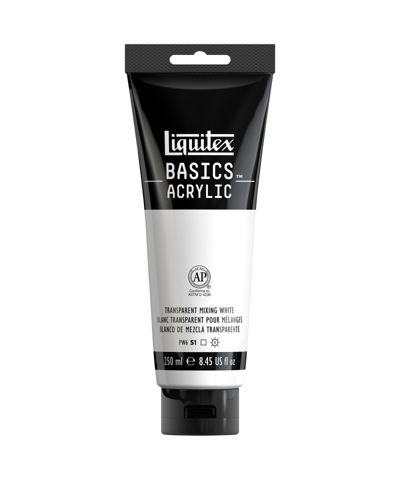 A transparent mixing white with reduced tinting strength, making it ideal for mixing to give stronger tints, and softer toning down of colors. Whether you’re a beginner on a budget, an experienced artist doing underpainting or sketching, or a creative professional doing color scoping and exploration, Liquitex Basics Acrylic has you covered. Formulated with the same lightfast, fine art pigments used in our professional range (just with a lighter pigment load), Basics Acrylic delivers a lightfast, medium viscosity experience that sacrifices nothing. It’s the perfect balance of quality, versatility, and economy. So, what are you waiting for? Jump straight in, go for it, and see what happens. Experience The Everyday Acrylic.