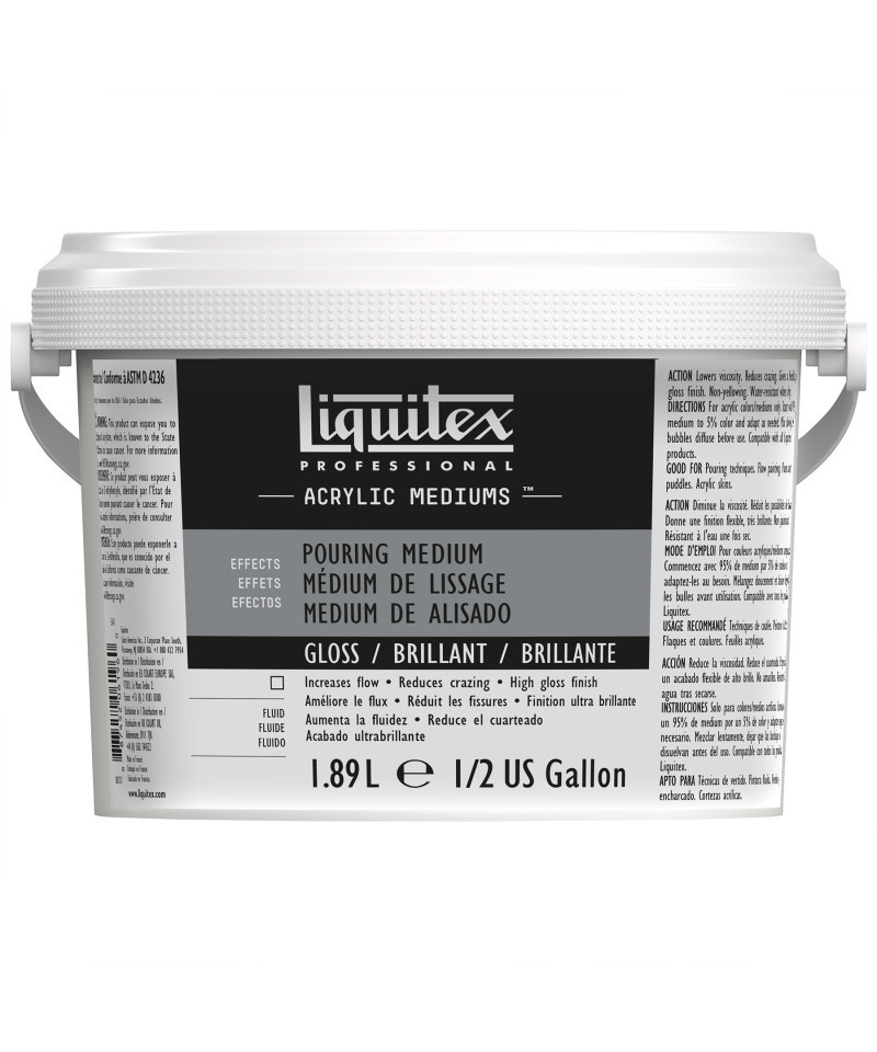Achieve flawless, high-gloss pours with Professional Acrylic Pouring Medium, Clear. This self-leveling acrylic medium improves paint flow and consistency, allowing artists to create smooth, uniform layers without crazing, cracking, or uneven drying. When mixed with acrylic color, it produces beautiful, flowing effects and maintains color clarity while increasing flexibility and durability once dry. Ideal for traditional pours, puddles, marbling, and drip techniques, this clear medium can be used on canvas, wood, or panel surfaces. It dries to a strong, water-resistant finish that enhances color depth and movement. Non-yellowing and permanent, it ensures professional-quality, long-lasting results for both artists and educators experimenting with fluid art.