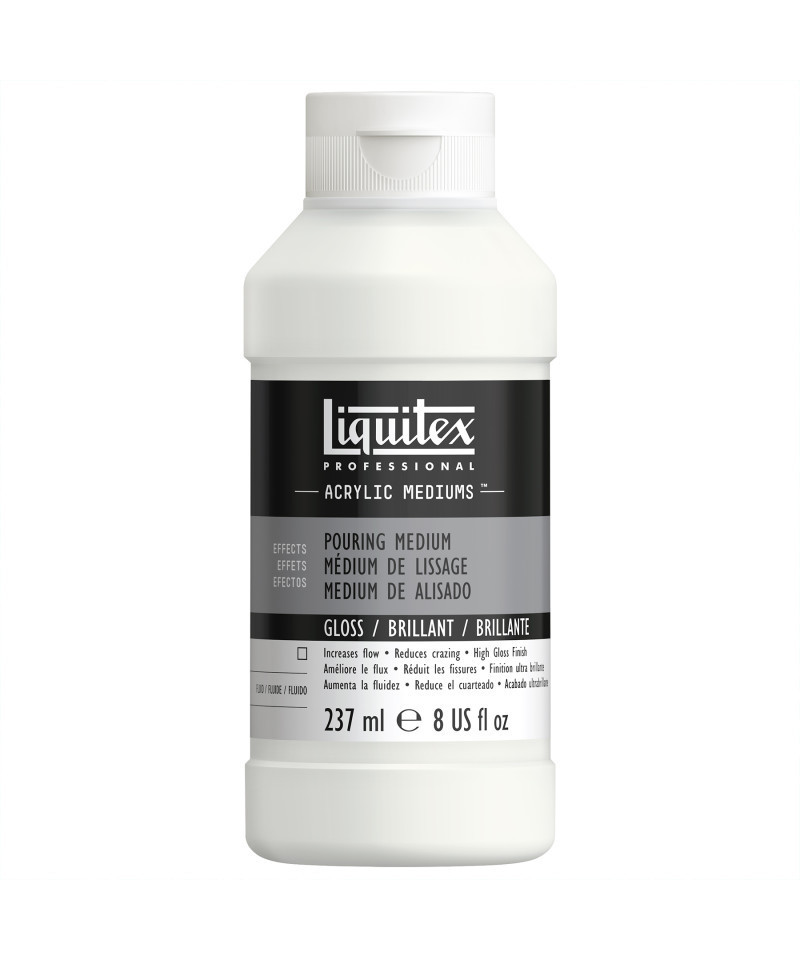Achieve flawless, high-gloss pours with Professional Acrylic Pouring Medium, Clear. This self-leveling acrylic medium improves paint flow and consistency, allowing artists to create smooth, uniform layers without crazing, cracking, or uneven drying. When mixed with acrylic color, it produces beautiful, flowing effects and maintains color clarity while increasing flexibility and durability once dry. Ideal for traditional pours, puddles, marbling, and drip techniques, this clear medium can be used on canvas, wood, or panel surfaces. It dries to a strong, water-resistant finish that enhances color depth and movement. Non-yellowing and permanent, it ensures professional-quality, long-lasting results for both artists and educators experimenting with fluid art.