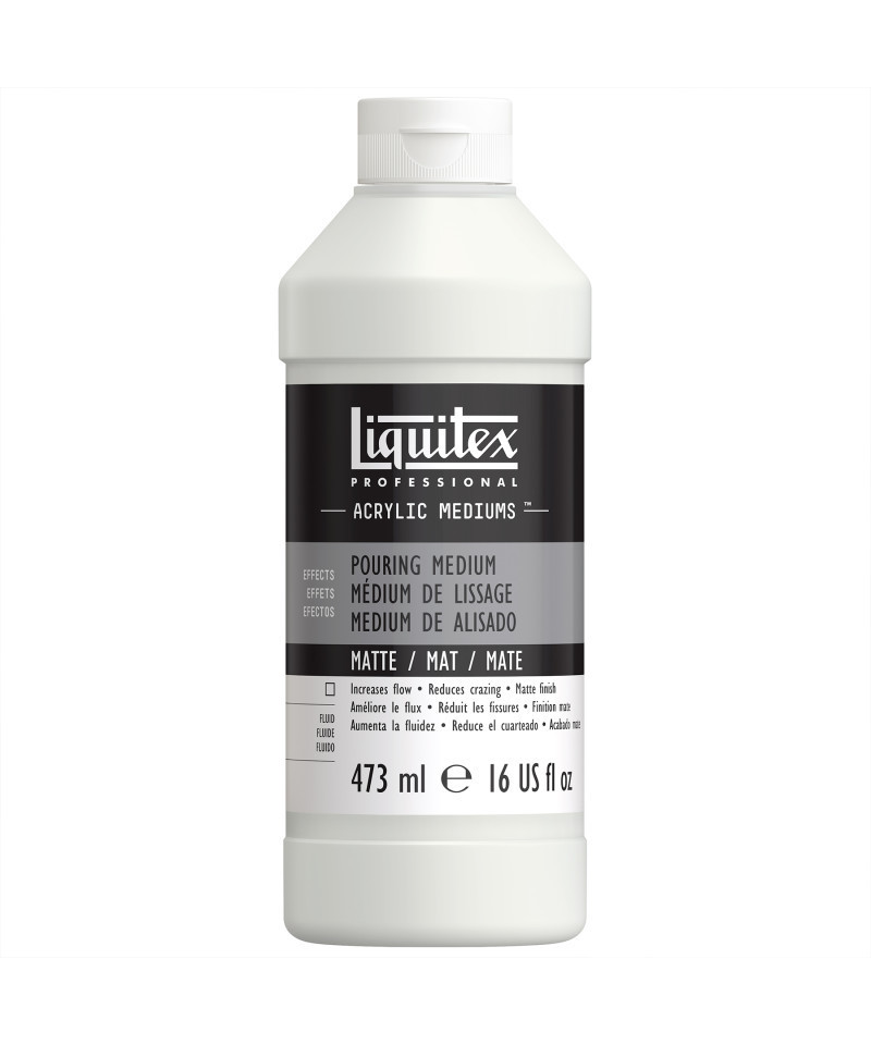 Create beautifully smooth pours with a soft, velvety finish using Professional Acrylic Pouring Medium, Matte. This specialized self-leveling medium enhances acrylic paint flow and consistency while drying to a durable, non-reflective surface. It prevents cracks and crazing, ensuring even color distribution and stable film formation. When mixed with acrylic paints, it maintains pigment clarity and intensity while reducing surface gloss for a modern matte appearance. Ideal for traditional pouring, puddling, and marbling techniques, this medium can also be used for layered pours or subtle blending effects. Permanent, flexible, and non-yellowing when dry, it provides professional-quality results for artists seeking refined control and a contemporary matte look in their fluid art.
