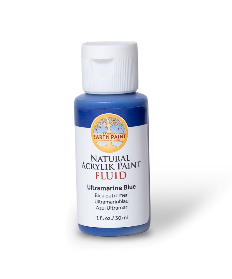 Plant-based, eco-friendly, lightfast and archival, our Natural Acrylik Fluid Paint is the ONLY paint that behaves exactly like conventional acrylic paint, but is safe for you and the planet. Highly pigmented, professional quality, fluid paints that are free of harmful additives, heavy metals, solvents and carcinogenic ingredients. Paints on canvas, paper, wood, fabric, stones, glass and more. Fast drying and mixes perfectly with conventional acrylik paint. It can also be used as a permanent and water-proof fabric paint. Made with natural and non-toxic pigments, plant-based resin and bio-based ingredients. Dries to a satin finish. 1 oz. in 100% post-consumer recycled squeeze bottle.