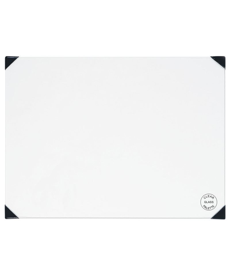 Work with precision and flexibility using the Posh Table Top Palette, Glass, Clear, 12 x 16 in by New Wave Art. This professional-grade tempered glass palette provides a durable, transparent surface ideal for paint mixing across multiple mediums. Its clear design allows artists to place color references, grey scales, or neutral backgrounds underneath for optimal color accuracy and control. The generous 12 x 16 inch format offers ample mixing space for studio or plein air setups while maintaining a sleek, modern look. Resistant to staining, warping, and wear, the non-porous glass surface wipes clean easily with a razor scraper or solvent. Finished edges and non-slip rubber feet ensure comfort, safety, and stability during use. Perfect for oil, acrylic, watercolor, gouache, and mixed media, this palette is proudly made in the USA for artists who value craftsmanship and sustainability.