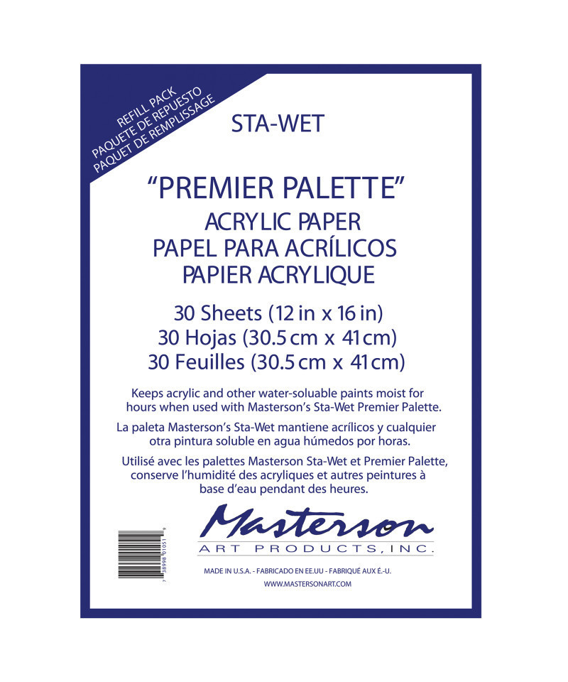 - 30-sheet refill pack: Includes 30 sheets of Sta-Wet® acrylic palette paper sized 12 x 16 in.