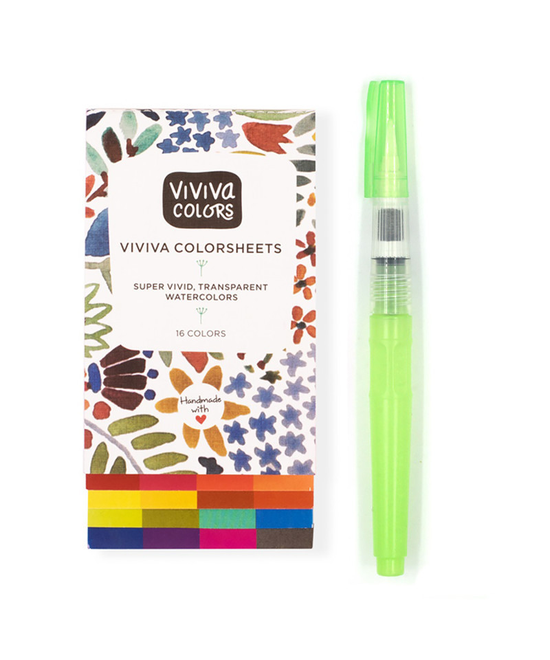 Viviva Colorsheets are ingenious portable watercolor sets made as small booklets featuring super-saturated layers of pigment deposited on the paper. To use, simply use your included waterbrush, dab it into the color, and start painting. The vibrant watercolors are made with high-quality pigments with colors so bright, they jump right off the page.