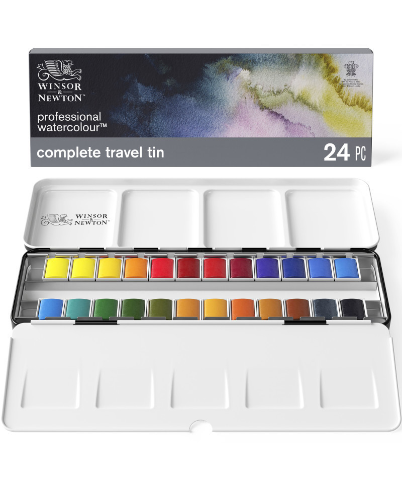 - Set of 24 professional half pans: Includes a full spectrum of essential colors for mixing, glazing, landscapes, portraits, and expressive studies.