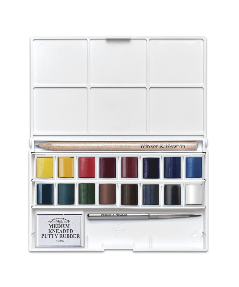 Experience portable watercolor painting at its best with the Winsor & Newton Cotman Watercolor Complete Pocket Set, featuring 16 Cotman half pans made with high-quality, fine art pigments. This compact, travel-friendly kit includes everything needed for on-the-go creativity: a travel brush, drawing pencil, and kneaded putty rubber, all neatly housed in a durable pocket-sized case.