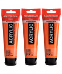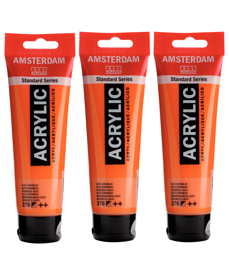 Amsterdam Standard Series acrylic paint in Azo orange (276) is a semi-opaque color with a very good lightfastness (++). Our Standard Series offers you the broadest range of remarkably vibrant acrylic colors. This versatile paint is easy to work with and offers a smooth application. Use the paint straight from the tube or thinned with a little bit of water or one of our acrylic mediums. Medium viscosity paint for visible brush strokes, texture and smooth coverage with a satin finish. Made with high-quality, lightfast pigments. Formulated with 100% acrylic resin binder, resulting in an exceptionally durable and flexible paint film with a uniform degree of gloss. Odorless, water-based formula that becomes waterproof and permanent when dry. Extensive range of 102 colors available in 20ml and 120ml tubes, of which up to 90 colors are also available in larger sizes. The range of colors includes both traditional and modern colors such as reflex and metallic variants. Adheres to virtually any slightly porous surface, including canvas, paper, cardboard, wood, stone and cement. Proudly crafted in the Netherlands. Sold as a pack of 3.