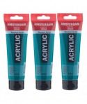 Amsterdam Standard Series acrylic paint in Phthalo Green (675) is a transparent color with an excellent lightfastness. Our Standard Series offers you the broadest range of remarkably vibrant acrylic colors. This versatile paint is easy to work with and offers a smooth application. Use the paint straight from the tube or thinned with a little bit of water or one of our acrylic mediums. Medium viscosity paint for visible brush strokes, texture and smooth coverage with a satin finish. Made with high-quality, lightfast pigments. Formulated with 100% acrylic resin binder, resulting in an exceptionally durable and flexible paint film with a uniform degree of gloss. Odorless, water-based formula that becomes waterproof and permanent when dry. Extensive range of 102 colors available in 20ml and 120ml tubes, of which up to 90 colors are also available in larger sizes. The range of colors includes both traditional and modern colors such as reflex and metallic variants. Adheres to virtually any slightly porous surface, including canvas, paper, cardboard, wood, stone and cement. Proudly crafted in the Netherlands. Sold as a pack of 3.