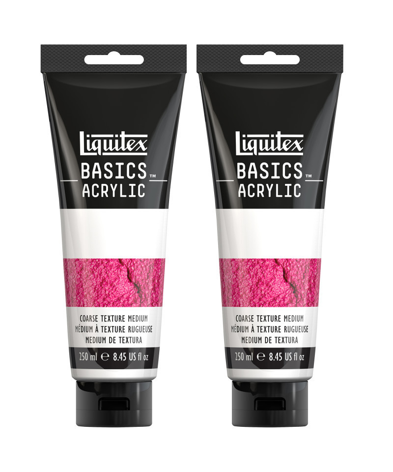 Add dramatic surface dimension to your artwork with Liquitex BASICS Coarse Texture Gel, 250 mL Tube. This acrylic medium contains a blend of acrylic resin and coarse aggregates that produce a rough, gritty texture when dry—perfect for creating natural, stone-like surfaces and tactile effects. Use it alone for textural backgrounds or mix it with acrylic color to add body and depth to your paint. Once dry, it can be painted over, glazed, or varnished to enhance visual contrast. The flexible, non-cracking formula adheres to canvas, wood, paper, and other primed surfaces, making it ideal for mixed-media applications. Liquitex BASICS Coarse Texture Gel offers artists and students an easy way to introduce bold, dimensional texture into their fine art and craft projects. Sold as a pack of 2.