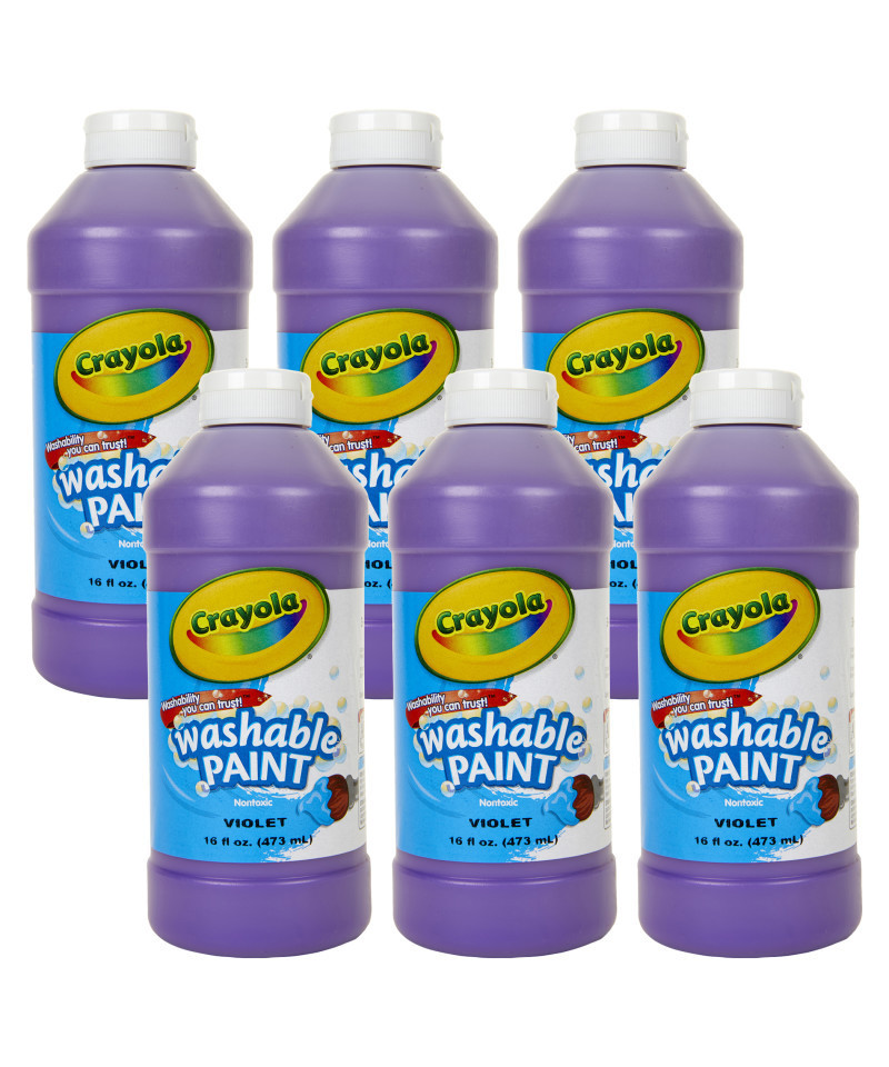 Crayola Washable Paint combines vibrant color with easy washability. Children can express themselves freely because Crayola Washable Paint cleans up with just soap and water. Washes easily from skin and most children's clothing. Non-toxic, AP Seal. Includes 16 ounces of 1 washable paint color in a translucent, plastic squeeze bottle with air-tight flip-top lid! Sold as 6 bottles.