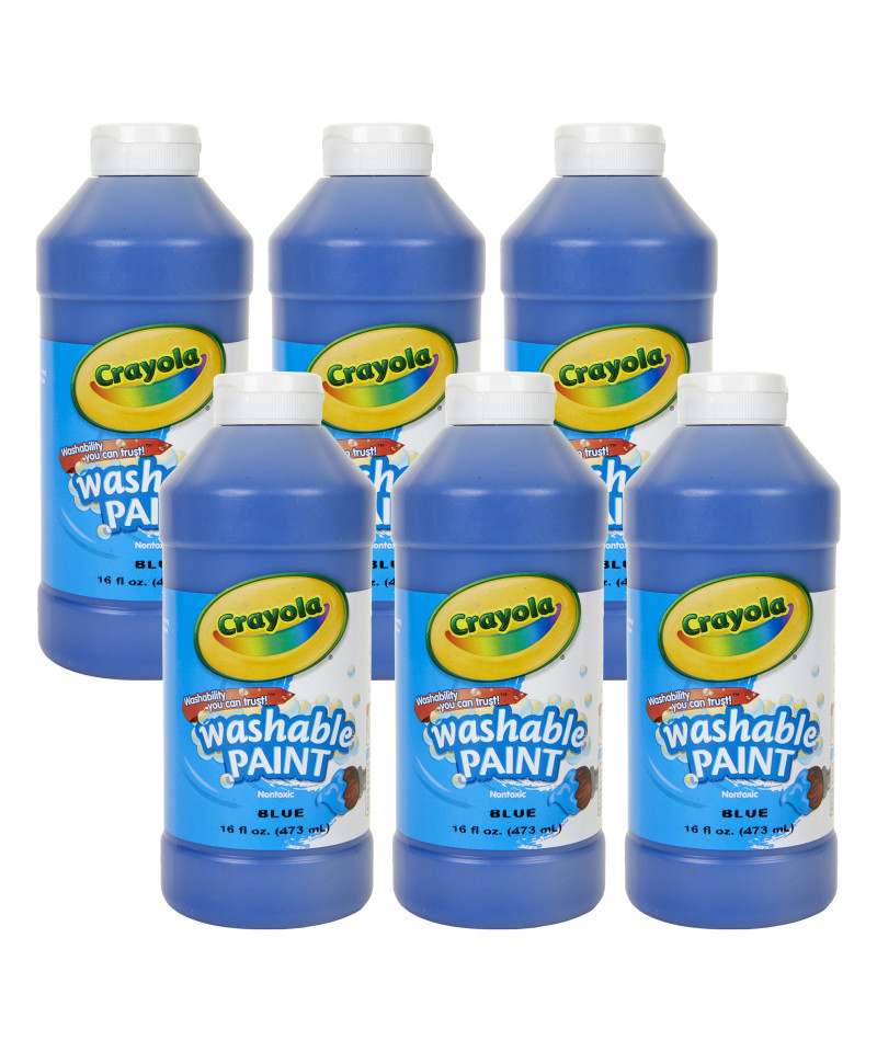 Crayola Washable Paint combines vibrant color with easy washability. Children can express themselves freely because Crayola Washable Paint cleans up with just soap and water. Washes easily from skin and most children's clothing. Non-toxic, AP Seal. Includes 16 ounces of 1 washable paint color in a translucent, plastic squeeze bottle with air-tight flip-top lid! Sold as 6 bottles.