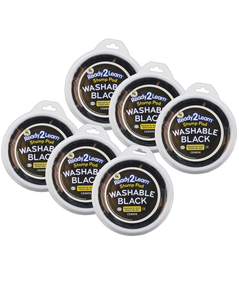 Stamp and create with this black Jumbo Circular Washable Stamp Pad! Made of non-toxic ink, this stamp pad is safe for ages 3+. The ink is acid-free and fade resistant for archival quality, which makes you can store your little artist's creations forever! An open-ended tool to decorate scrapbooks, notebooks or cards, this stamp pad inspires creative expression and imagination. As children stamp, they will develop fine motor skills and hand-eye coordination. This stamp pad features a huge 5.75" diameter for handprints and baby footprints. The ink comes clean with soap and water. Size of ink pad surface area: 5.75" dia. Sold as a pack of 6 stamp pads.