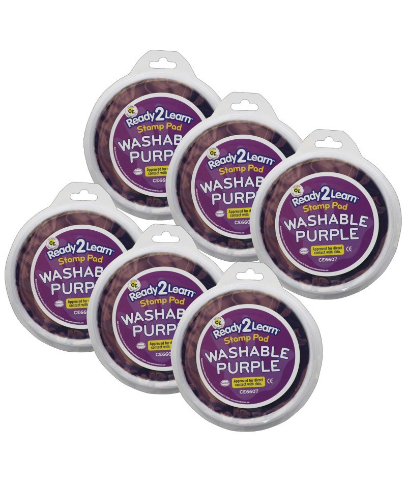 Stamp and create with this purple Jumbo Circular Washable Stamp Pad! Made of non-toxic ink, this stamp pad is safe for ages 3+. The ink is acid-free and fade resistant for archival quality, which makes you can store your little artist's creations forever! An open-ended tool to decorate scrapbooks, notebooks or cards, this stamp pad inspires creative expression and imagination. As children stamp, they will develop fine motor skills and hand-eye coordination. This stamp pad features a huge 5.75" diameter for handprints and baby footprints. The ink comes clean with soap and water. Size of ink pad surface area: 5.75" dia. Sold as a pack of 6 stamp pads.