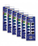 Half pan watercolor sets hold the same quality semi-moist paint that have made Prang famous with generations of students and professional artists. Paint never dries out. Box lid doubles as a mixing tray. Superior color in a handy case. Refills are available. AP certified non-toxic. Sold as 6 paint sets.