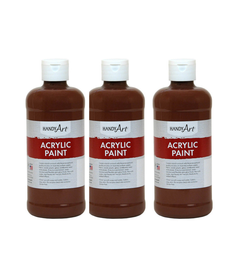 These acrylic paints combine high quality with low cost and are the preferred choice for paint parties! You can explore most any idea or project with this economical spectrum of colors. Use on most any surface: paper, fabric, wood, plastic, glass, cardboard, metal and canvas. Rich and durable colors dry to a permanent, water resistant and flexible semi-gloss finish. Clean up with soap and water. Certified AP Non-Toxic and Gluten-Free. Made in the USA. Each bottle includes 16 oz. of paint. Sold as a pack of 3 bottles.