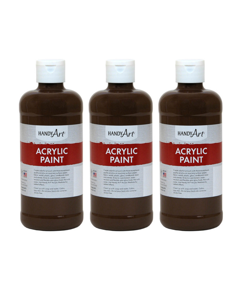These acrylic paints combine high quality with low cost and are the preferred choice for paint parties! You can explore most any idea or project with this economical spectrum of colors. Use on most any surface: paper, fabric, wood, plastic, glass, cardboard, metal and canvas. Rich and durable colors dry to a permanent, water resistant and flexible semi-gloss finish. Clean up with soap and water. Certified AP Non-Toxic and Gluten-Free. Made in the USA. Each bottle includes 16 oz. of paint. Sold as a pack of 3 bottles.