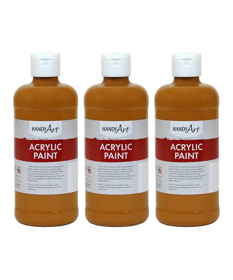 These acrylic paints combine high quality with low cost and are the preferred choice for paint parties! You can explore most any idea or project with this economical spectrum of colors. Use on most any surface: paper, fabric, wood, plastic, glass, cardboard, metal and canvas. Rich and durable colors dry to a permanent, water resistant and flexible semi-gloss finish. Clean up with soap and water. Certified AP Non-Toxic and Gluten-Free. Made in the USA. Each bottle includes 16 oz. of paint. Sold as a pack of 3 bottles.