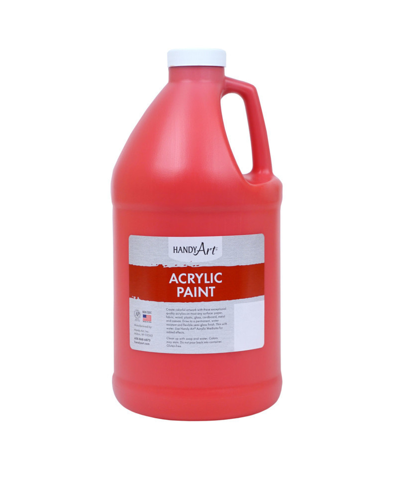 Handy Art® acrylic paints combine high quality with low cost and are the preferred choice for paint parties! You can explore most any idea or project with this economical spectrum of colors. Use on most any surface: paper, fabric, wood, plastic, glass, cardboard, metal and canvas. Rich and durable colors dry to a permanent, water resistant and flexible semi-gloss finish. Clean up with soap and water. Certified AP Non-Toxic and Gluten-Free. Made in the USA. Each bottle is 64 oz.