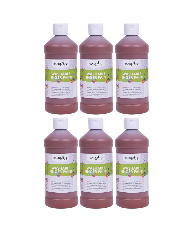 Handy Art® Washable Finger Paint offers vibrant, fast drying color with a smooth and creamy texture. Never have little hands had so much fun and been so clean afterwards! Handy Art® Washable Finger Paints are available in a variety of sizes and colors. Handy Art® Washable Finger Paints are designed to wash out of most clothing with soap and cold water. Handy Art® Washable Finger Paints are certified AP non-toxic. Each bottle is 16 oz. Sold as a pack of 6 bottles.