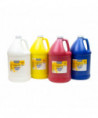 A fine quality and economical paint, a great combination for the beginning artist! Opaque blendable colors are bright and rich and won't chip, flake or crack when dry. Washes out of most fabrics with soap and cold water. Certified AP Non-Toxic. Made in the USA. Each kit includes 1 gallon each of 4 colors: White, Yellow, Red and Blue.