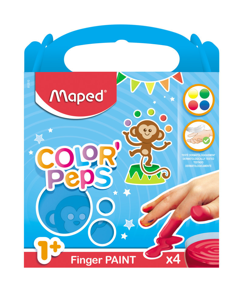 Maped My First Finger Paint is the perfect product for young artists! Perfectly suited for children over 1+, this ready-to-use finger paint is super vivid and smooth - just open the 3oz pots and start painting! The 4 ultra-bright colors (yellow, green, red, and blue) lay down smooth and are easy to blend, and the washable paint makes cleanup a snap when you're done painting! Viscous paints have great coverage power and work will all common types of paper. Resealable pots are easy to store in the included cardboard pouch!