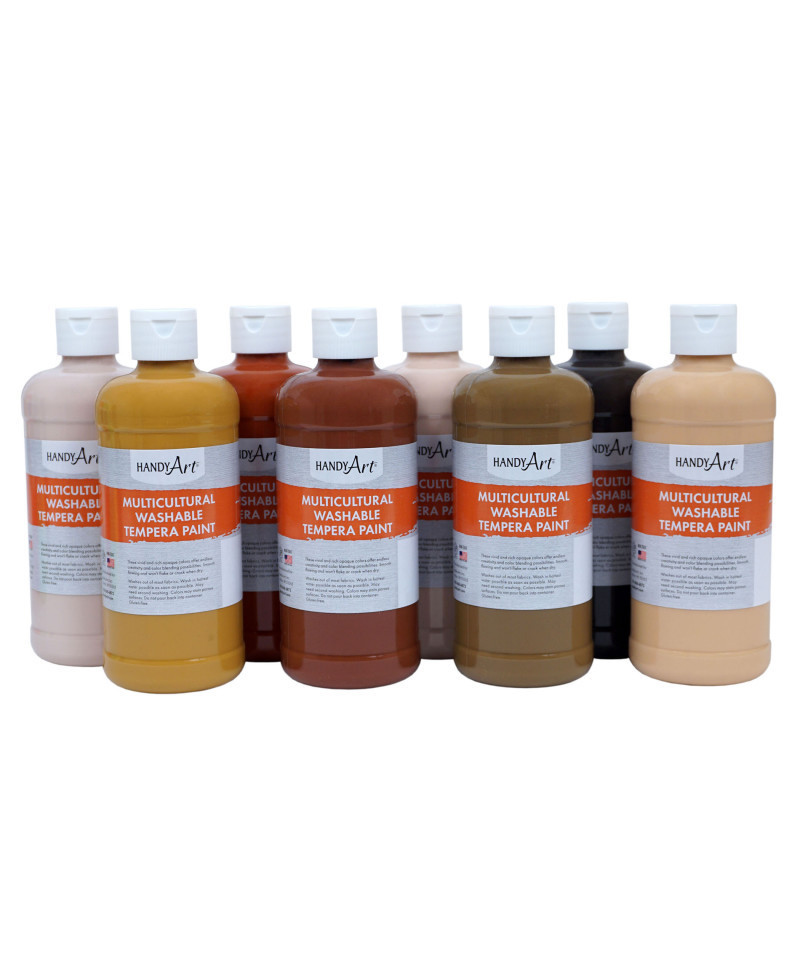 Handy Art® Washable Tempera paint provides easy clean up and super washability for the beginning artist. These bright blendable colors are smooth flowing and won't chip, flake or crack when dry. Washes out of most fabrics with soap and hot water. Water based and Certified AP Non-Toxic.