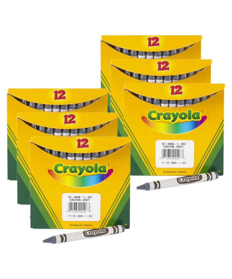 - GRAY CRAYOLA CRAYONS: Sold as 6 packs for a total of 72 crayons, each pack features 12 Classic Crayola Crayons in Gray