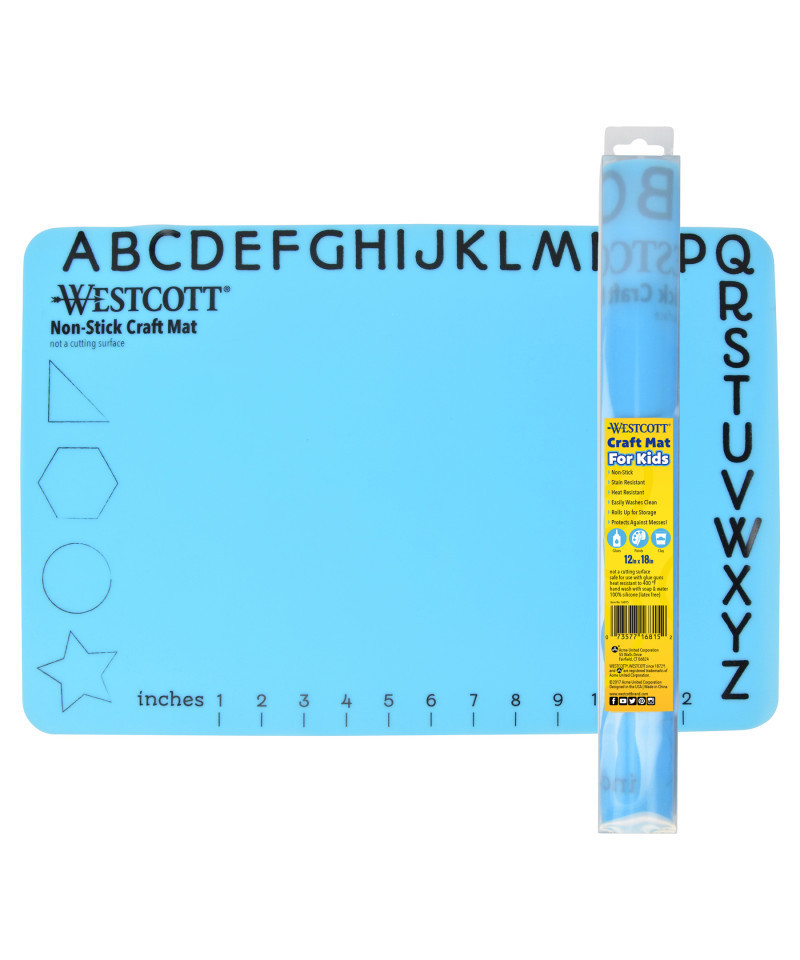 Protect your workspace with Westcott's 12" x 18" Non-Stick Silicone Kids Craft Mat. Hot glue or marker stains on your table? Kids can be messy when they are having fun. This mat is easy to clean and rolls up for convenient storage. Worry less about the mess with Westcott.