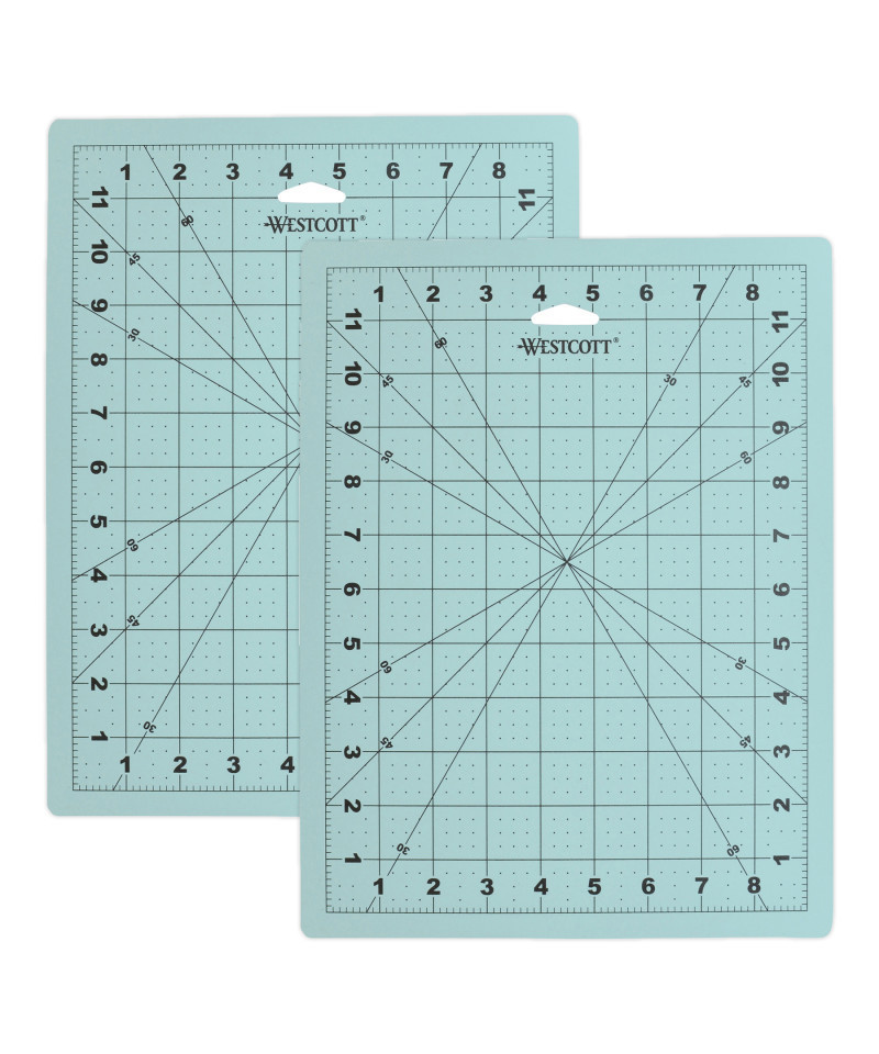 This Westcott Self-Healing Cutting Mat is ideal for any project involving sharp tools. The flexible yet durable construction is self-healing for extended performance and protects any work surface without dulling your hobby knife or rotary cutter. Includes measuring grids and scales. Sold as a pack of 2.