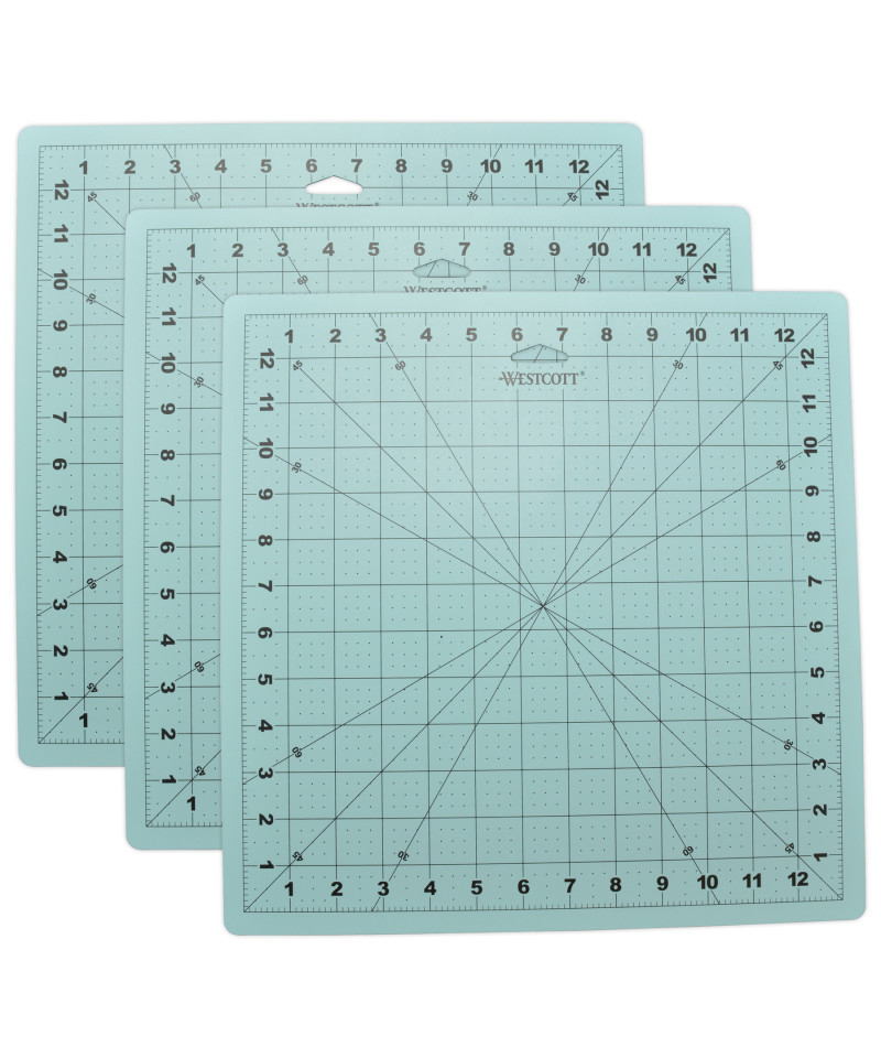 This Westcott Self-Healing Cutting Mat is ideal for any project involving sharp tools. The flexible yet durable construction is self-healing for extended performance and protects any work surface without dulling your hobby knife or rotary cutter. Includes measuring grids and scales. Protects your work space and your blade life all while creating fast, straight and easy cuts! Compatible with Westcott cutting blades, sold separately (scissors, rotary cutters, hobby knives). Measures 12" x 12". Sold as a pack of 3.