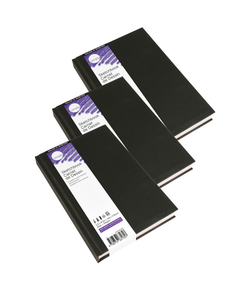 Each Daler-Rowney Simply hardbound sketchbook 5.5x8.5in portrait contains 110 sheets of soft white 100gsm paper. Daler-Rowney Simply Hardbound sketchbooks can be used indoors or on the go or for artists who are practicing their drawing, sketching & painting techniques. Daler-Rowney Simply Sketchbooks consist of a compact range of everyday sketchbooks. These soft white medium grain sketchbooks are ideal for beginner & amateur artists. Since 1783, Daler-Rowney has inspired professional artists, art students & hobbyists to embrace their creativity. We believe in producing art supplies that are sustainable, qualitative, durable, accessible & affordable. Sold as a pack of 3.