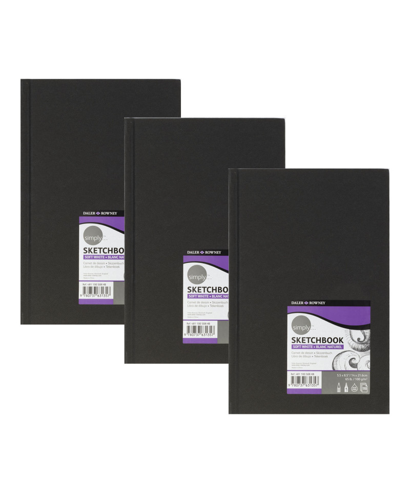 Each Daler-Rowney Simply spiral bound sketchbook 5.5x8.5in portrait features 80 sheets of soft white 100gsm paper. Daler-Rowney Simply spiral bound sketchbooks can be used indoors or on the go or for artists who are practicing their drawing, sketching & painting techniques. Daler-Rowney Simply Sketchbooks consist of a compact range of everyday sketchbooks. These soft white medium grain sketchbooks are ideal for beginner & amateur artists. Since 1783, Daler-Rowney has inspired professional artists, art students & hobbyists to embrace their creativity. We believe in producing art supplies that are sustainable, qualitative, durable, accessible & affordable. Sold as a pack of 3.